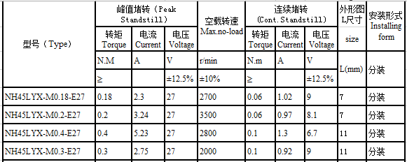 NH45LYX series brushless torque motor performance indicators